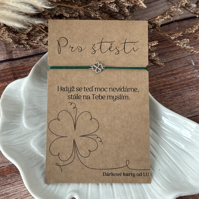 Proč se bude dárek určitě líbit? Tento ručně vyráběný náramek je víc než jen šperk. Je to symbol štěstí, naděje a připomínka toho, že i když jsme daleko, myslíme na sebe. Náramek je umístěný na dárkové kartičce, díky tomu je tento dárek s poselstvím okamžitě připraven k darování a zanechá hluboký dojem.