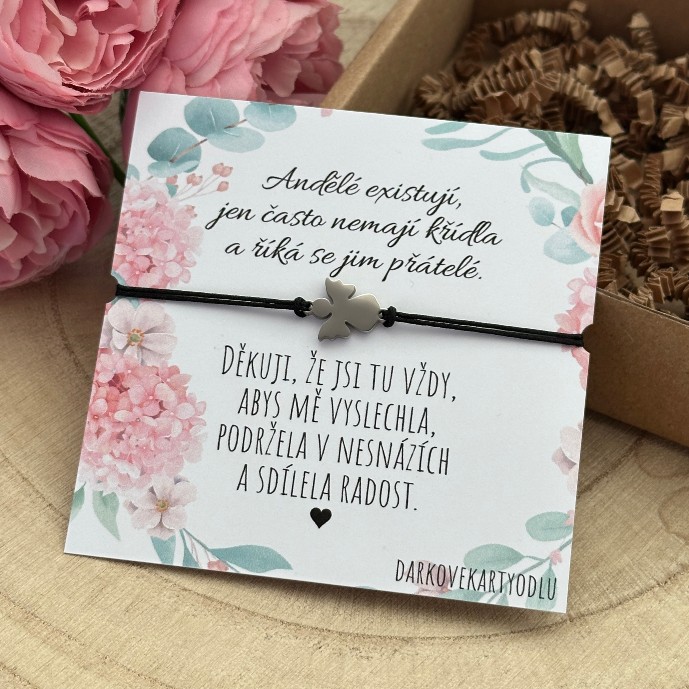 - balení: karta s náramkem je dodána v dárkové krabičce o velikosti 10 cm x 10 cm